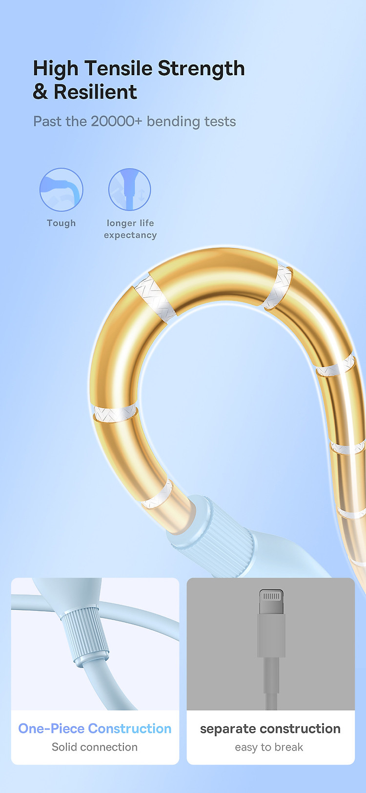 Baseus Pudding Series Fast Charging Cable được chế tạo với vật liệu chất lượng cao, đảm bảo độ bền trong quá trình sử dụng. Đầu cáp được làm bằng hợp kim nhôm chất lượng, cho độ bền và khả năng chống oxi hóa tốt.