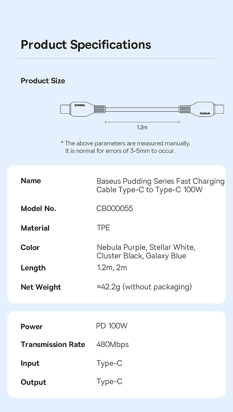 | Tên | Cáp Sạc Nhanh Baseus Pudding Series Fast Charging Cable Type-C to Type-C 100W |