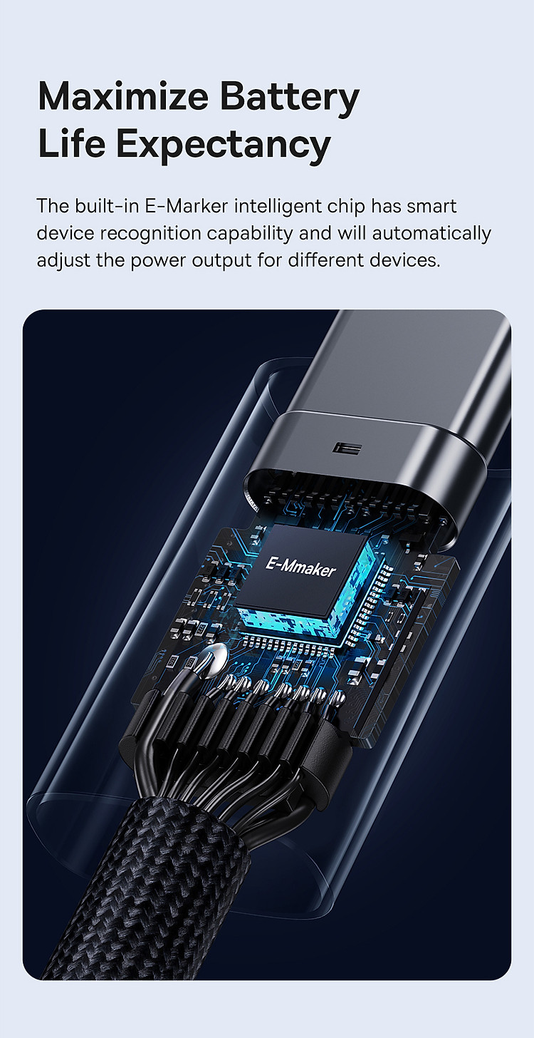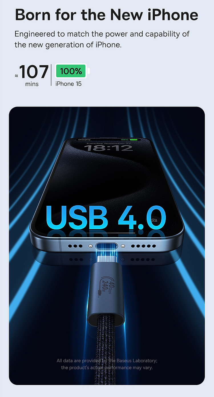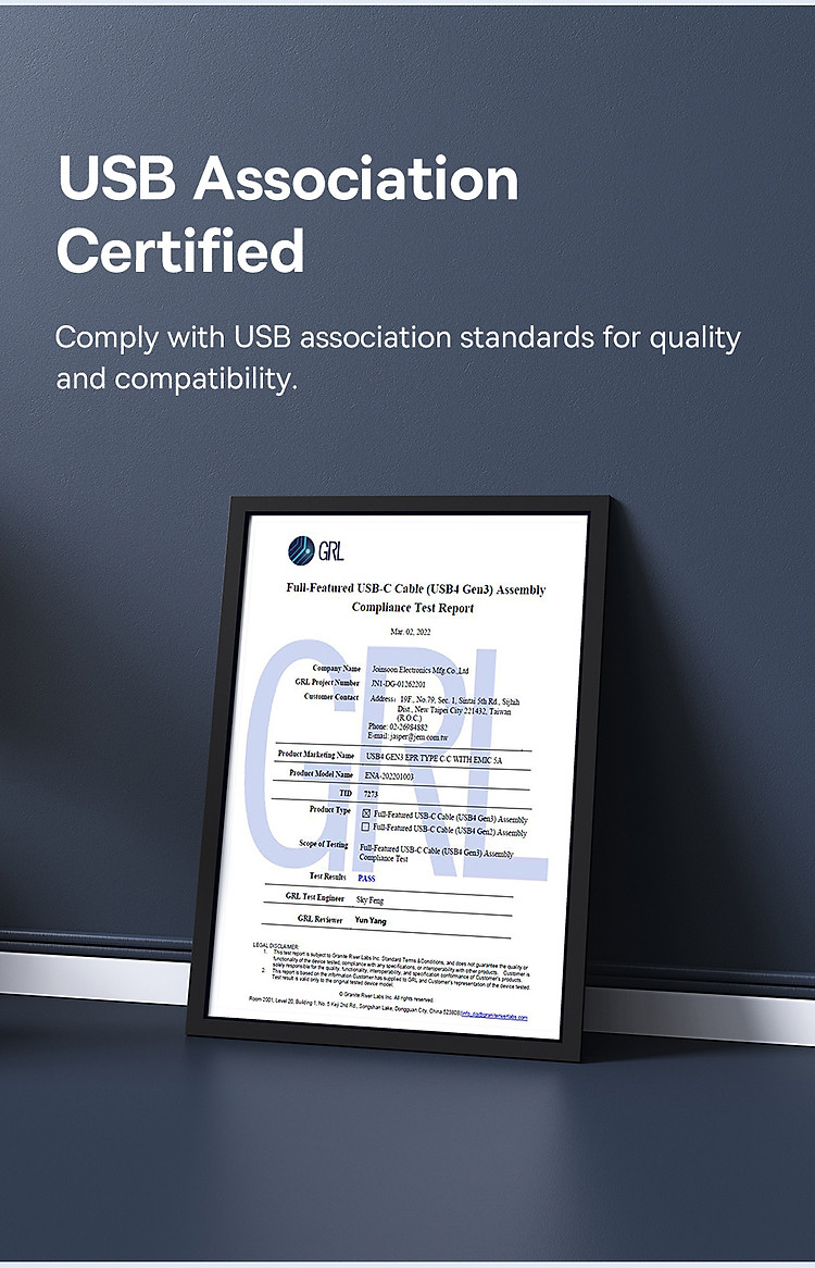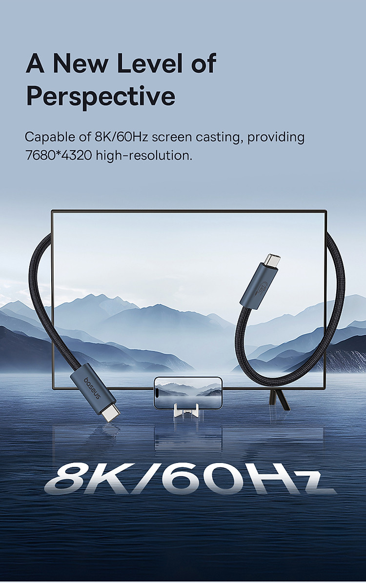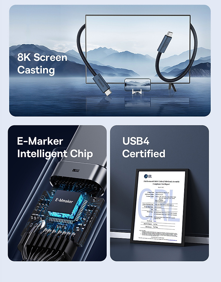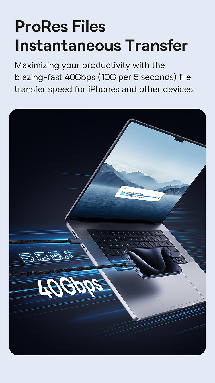 USB4 Full Featured Data Cable: Sử dụng tiêu chuẩn USB4, cáp này hỗ trợ tốc độ truyền dữ liệu cao và đồng thời cung cấp tốc độ sạc nhanh, tạo ra trải nghiệm sạc và truyền dữ liệu mượt mà.