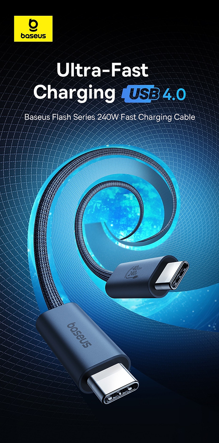 Cáp Sạc Nhanh Truyền Dữ Liệu Baseus Flash Series 2 USB4 Full Featured Data Cable Type-C to Type-C 240W là một lựa chọn đáng tin cậy để đáp ứng đầy đủ nhu cầu của bạn về sạc và truyền dữ liệu.