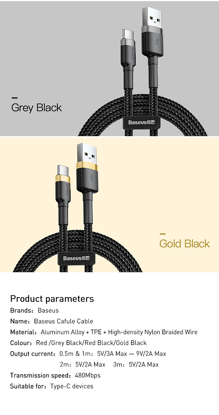 | Tên | Cáp sạc nhanh, truyền dữ liệu tốc độ cao Baseus cafule Cable USB For Type-C 2A |