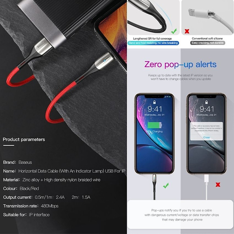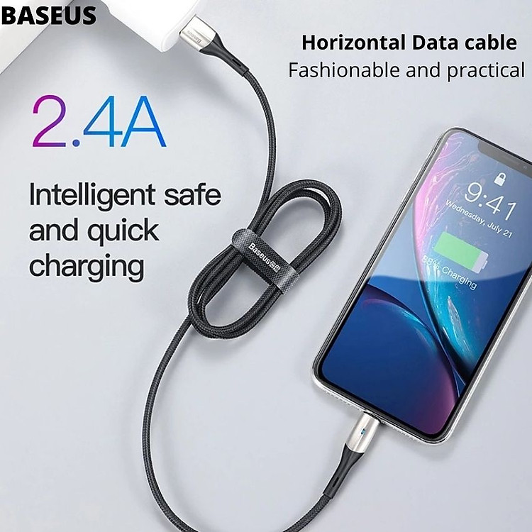 - Cáp sạc nhanh và truyền dữ liệu tốc độ cao cho Iphone CALSP Baseus Horizontal Data cable (2.4A, Indicator Lamp, Fast Charging, USB to Light-ning) dùng sạc pin và đồng bộ dữ liệu tốc độ cao cho các thiết bị của Apple như iPhone/ iPad/ iPod ... qua cổng Light-ning. Tương thích tốt iOS mọi phiên bản, không báo lỗi phụ kiện không tương thích.