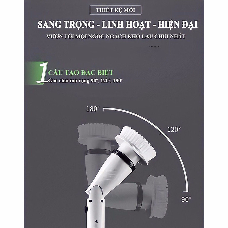 Góc của đầu bàn chải có thể được điều chỉnh tự do trong 135-180 độ.