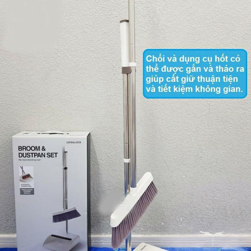 Chổi và dụng cụ hốt có thể được gắn và tháo ra giúp cất giữ thuận tiện và tiết kiệm không gian.