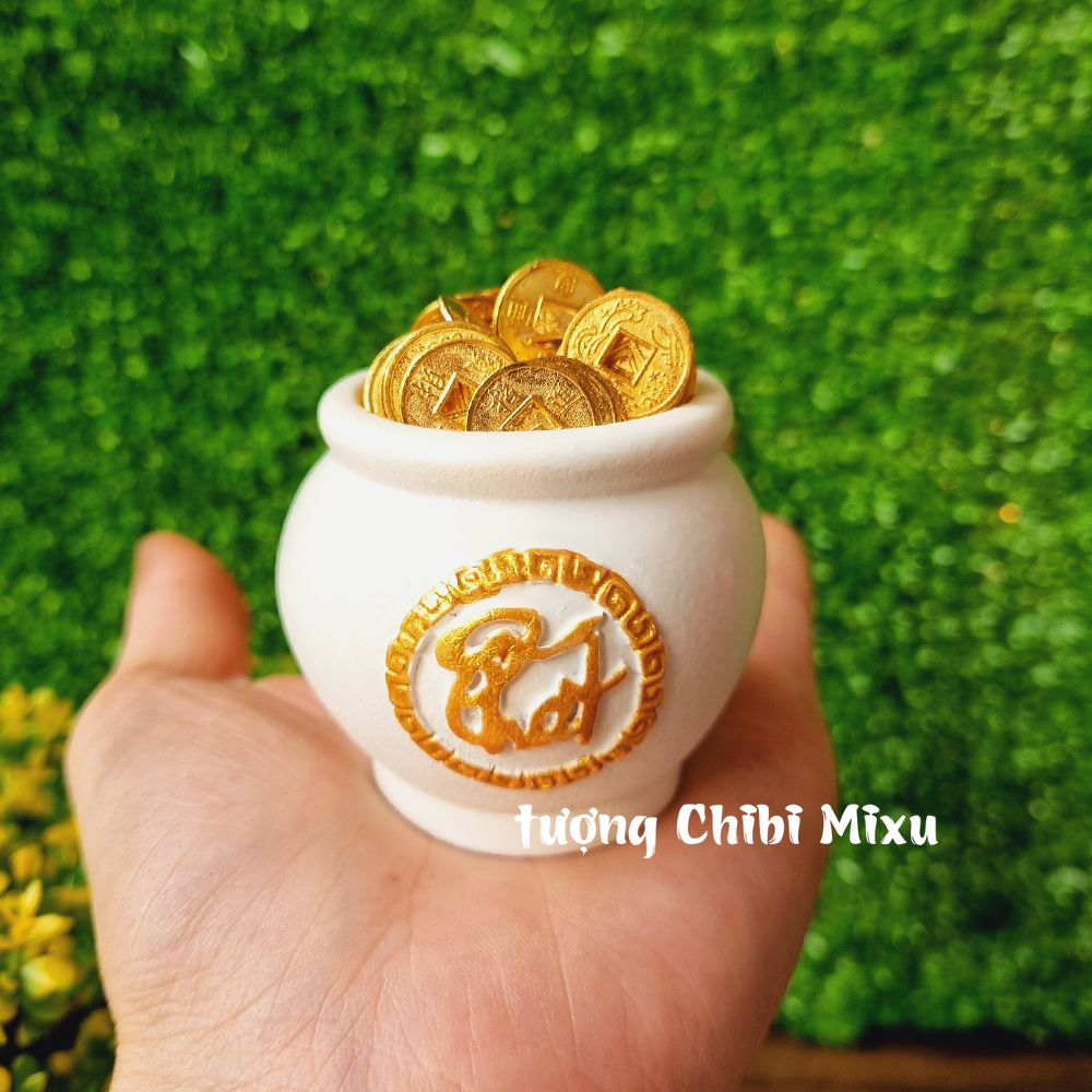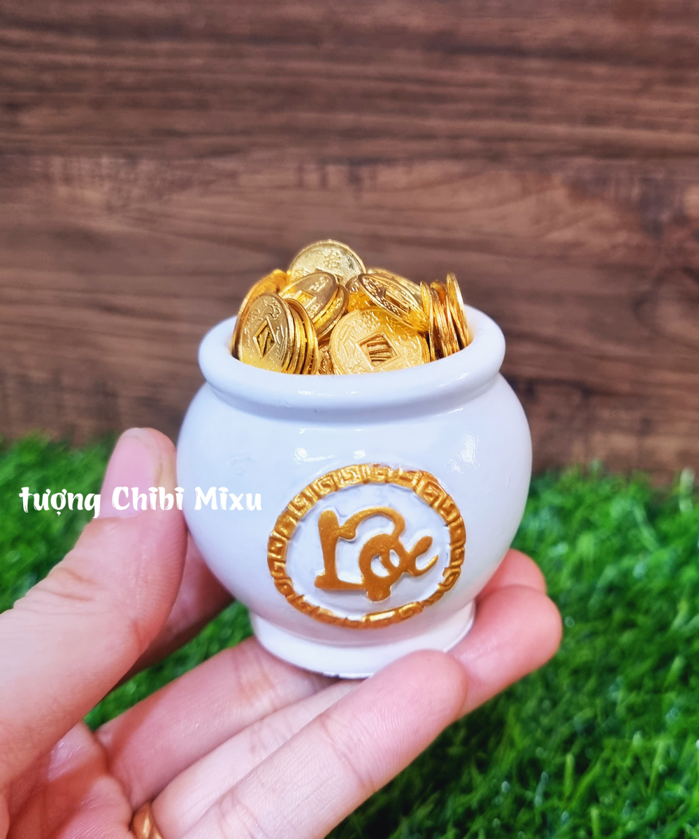 Chum vàng chữ TÀI / LỘC / PHÁT (gồm 1 chum trắng + 15 hạt gốm mèo + 100 xu vàng 13mm)Bộ sản phẩm gồm:+ 01 chum màu trắng: ngang 5.5cm x cao 5cm (KHÁCH LƯU Ý KÍCH THƯỚC GIÚP SHOP)+ 15 hạt gốm mèo may ...