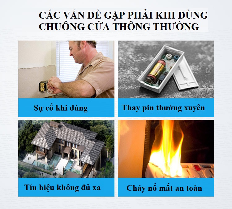 Các vấn đề mà các loại chuông cửa khác trên thị trường mắc phải nhiều nhất đó là lắp đặt phức tạp, phải thay pin thường xuyên, tín hiệu truyền không đủ xa, có thể gây cháy nổ mất an toàọi vấn đề trên đều được khắc phục với chuông cửa không dây cao cấp Linbell G2.