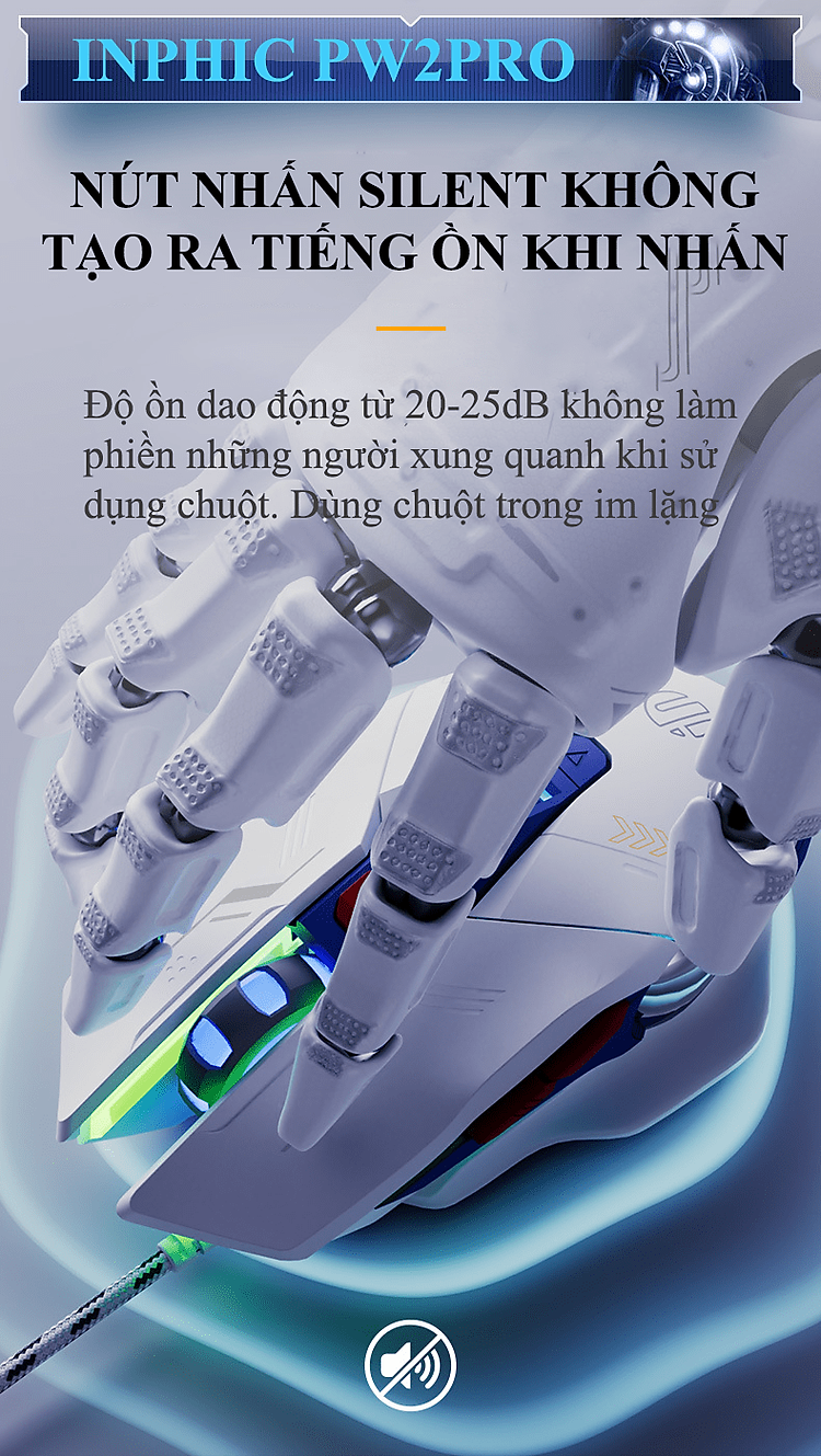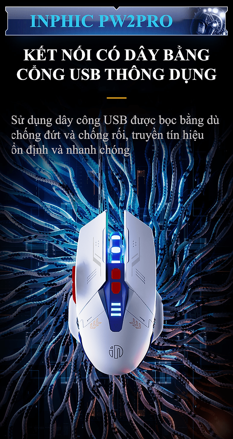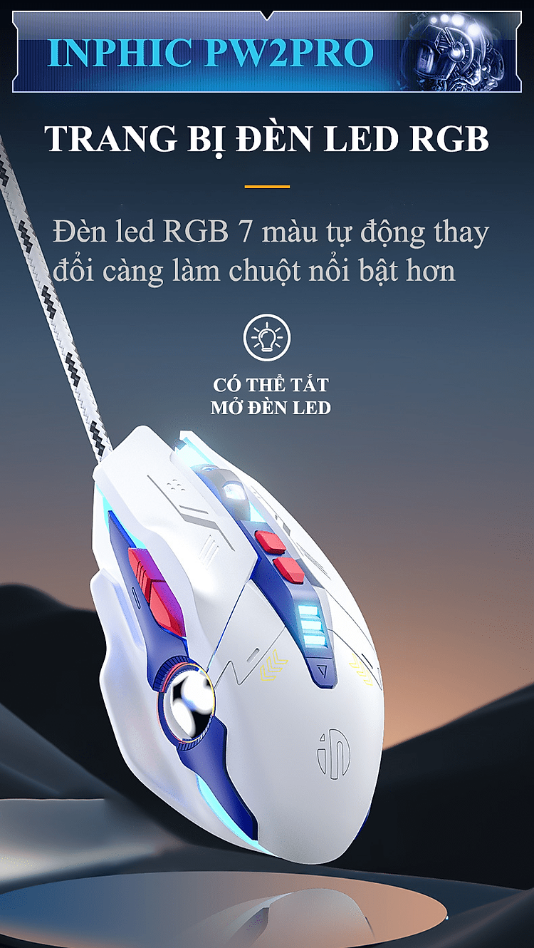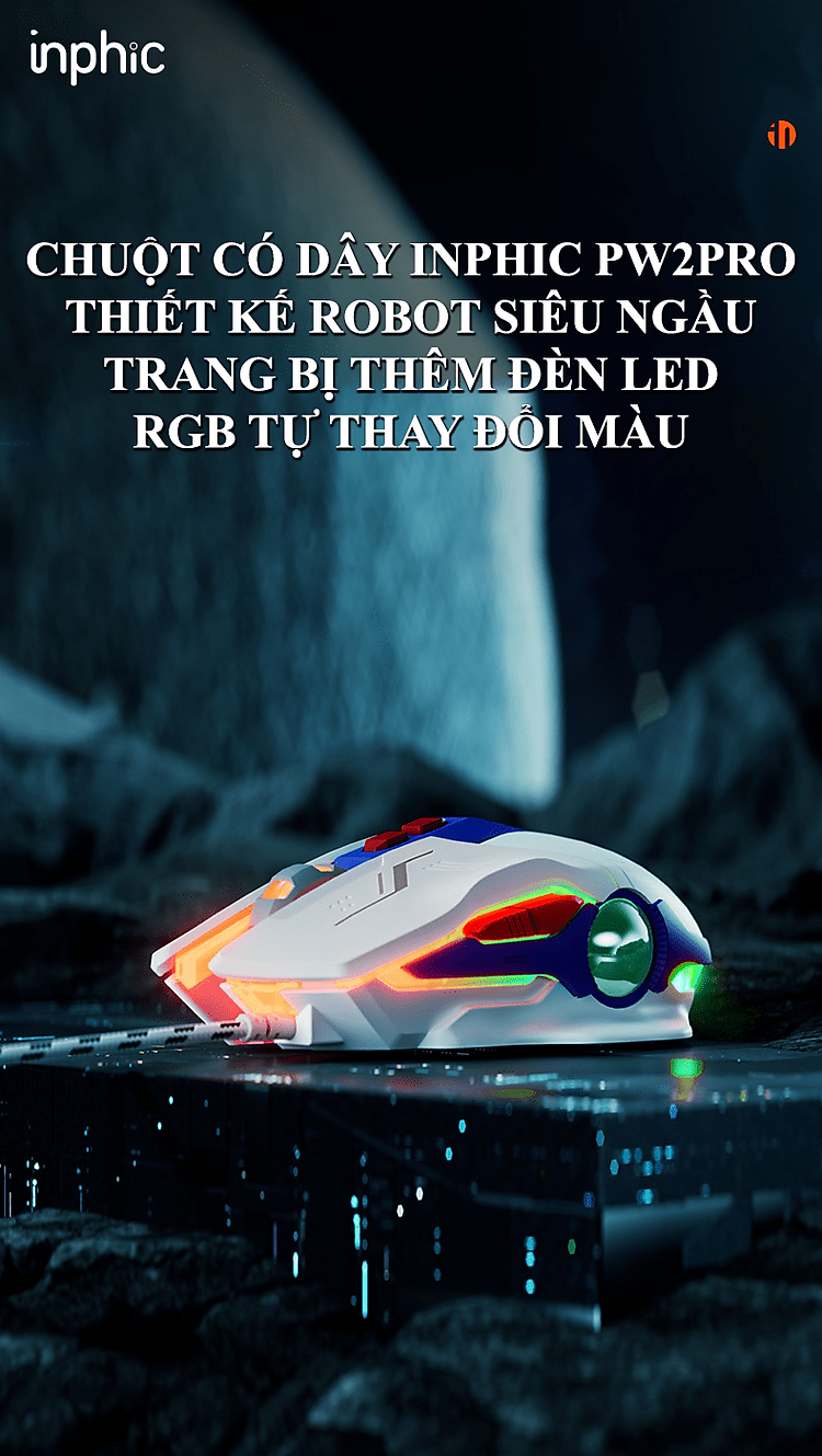 Chuột có dây INPHIC PW2PRO chuyên game thiết kế robot kèm theo đèn led RGB cực đẹp dành cho game thủ