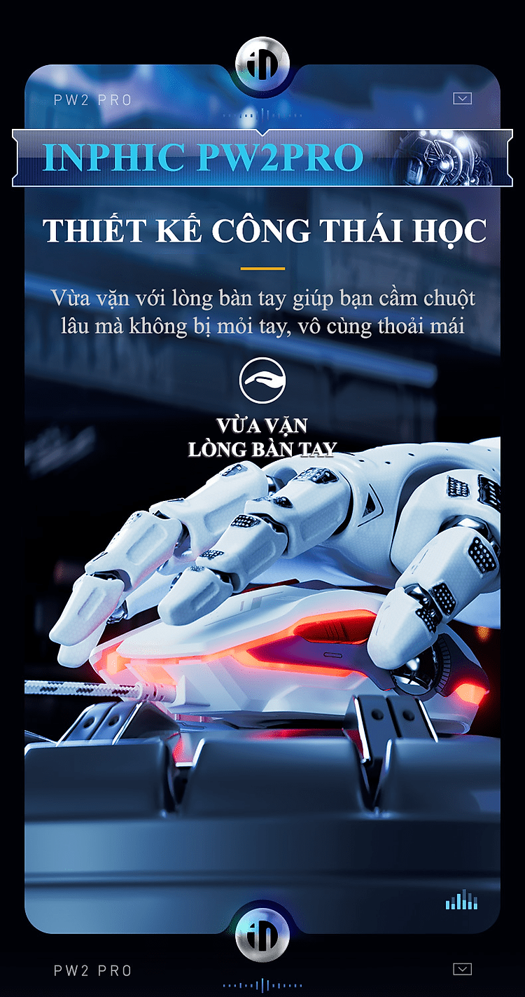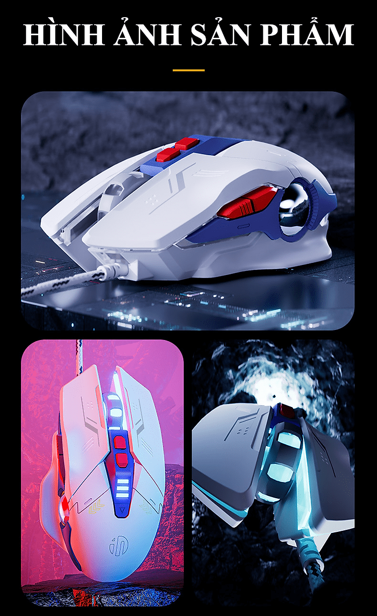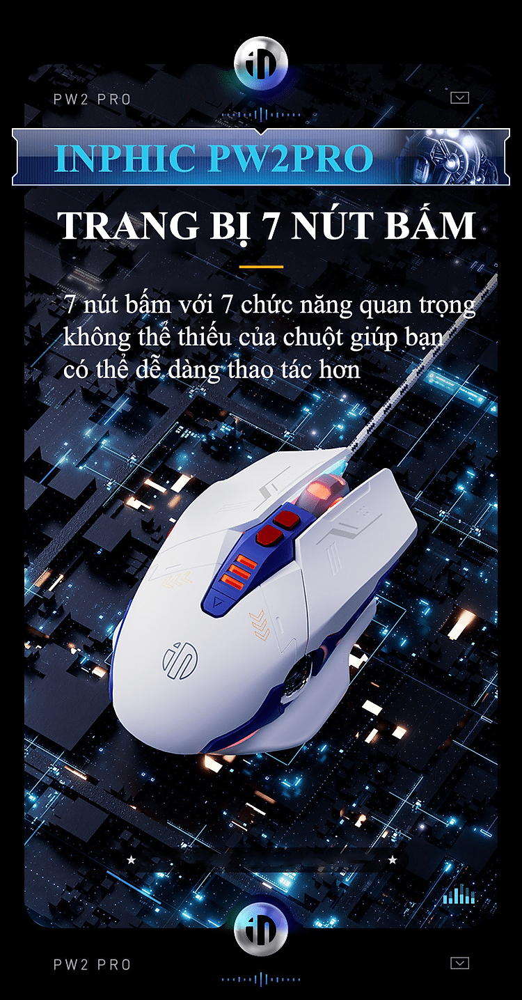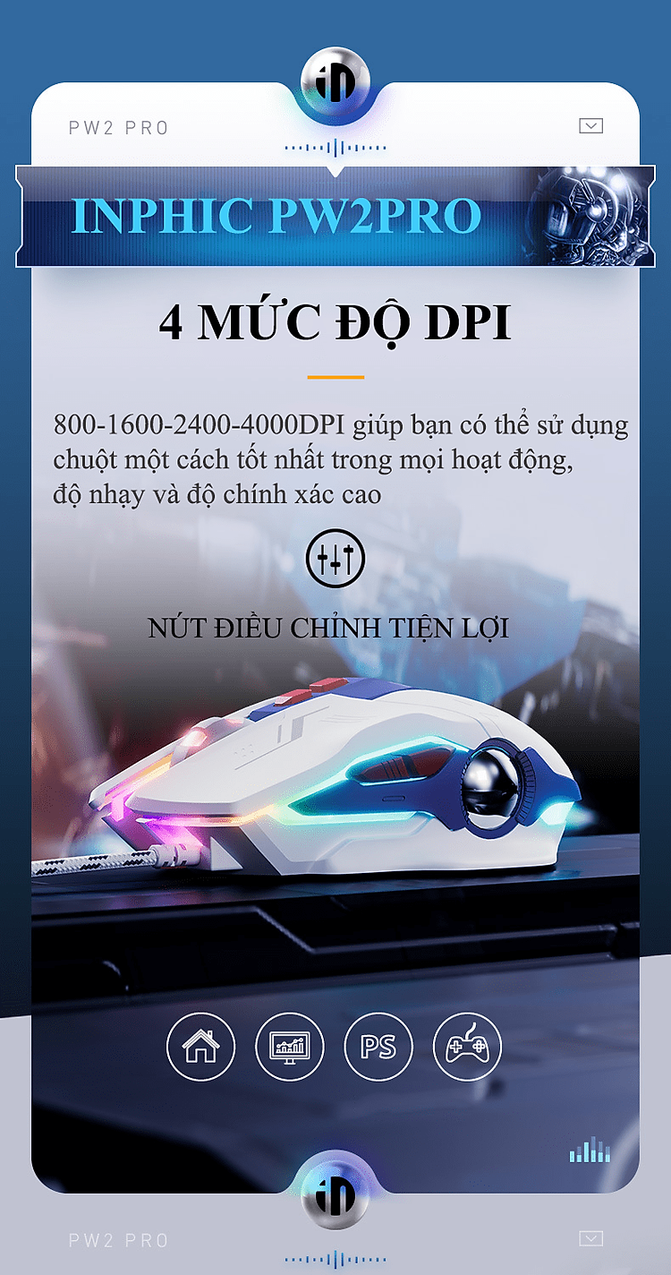 Chuột có dây INPHIC PW2PRO chuyên game thiết kế robot kèm theo đèn led RGB cực đẹp dành cho game thủ