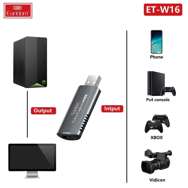 Bộ chuyển USB ra HDMI Earldom W16 ( Hỗ trợ livestream ghi hình từ điện thoại, camera, PS4, XBOX vào máy tính)
