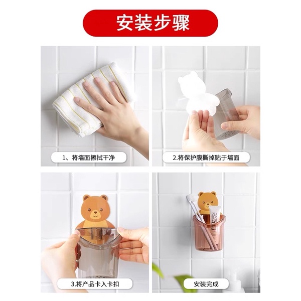 Cốc cắm bàn chải đánh răng hình gấu dán tường tiện lợi CamCamHome
