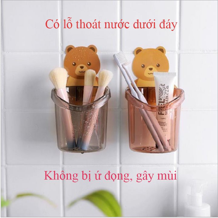 - Cốc đựng bàn chải đánh răng hình chú gấu bạn không phải lo tới vấn đề đục tường bới với miếng dính vô cùng chắn chắn chiếc cốc sẽ được cố định cho bạn, lại vừa đảm bảo cho bức tường của bạn không gây mất thẩm mĩ nếu sau này tháo ra