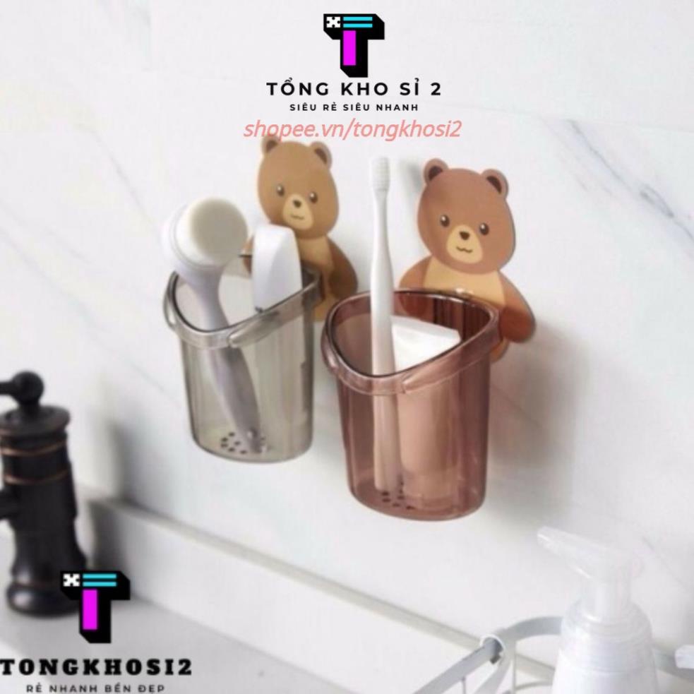 Giới thiệu Cốc Đựng Bàn Chải, Kem Đánh Răng Hình Gấu Cute Dính Tường T2