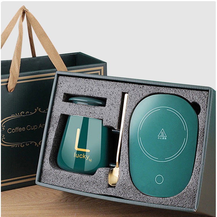 Cốc Hâm Nóng Đồ Uống Kèm Đế Điện, Bộ Ly Sứ Kèm Đế Điện Hâm Nóng Trà, Cafe, Hâm Sữa, Tặng Kèm Thìa Vàng, Hộp Sang Trọng