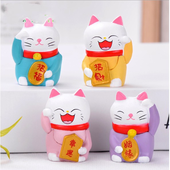 Combo 04 mô hình mèo thần tài Maneki Mako dễ thương cho các bạn trang trí tiểu cảnh, móc chìa khóa, DIY