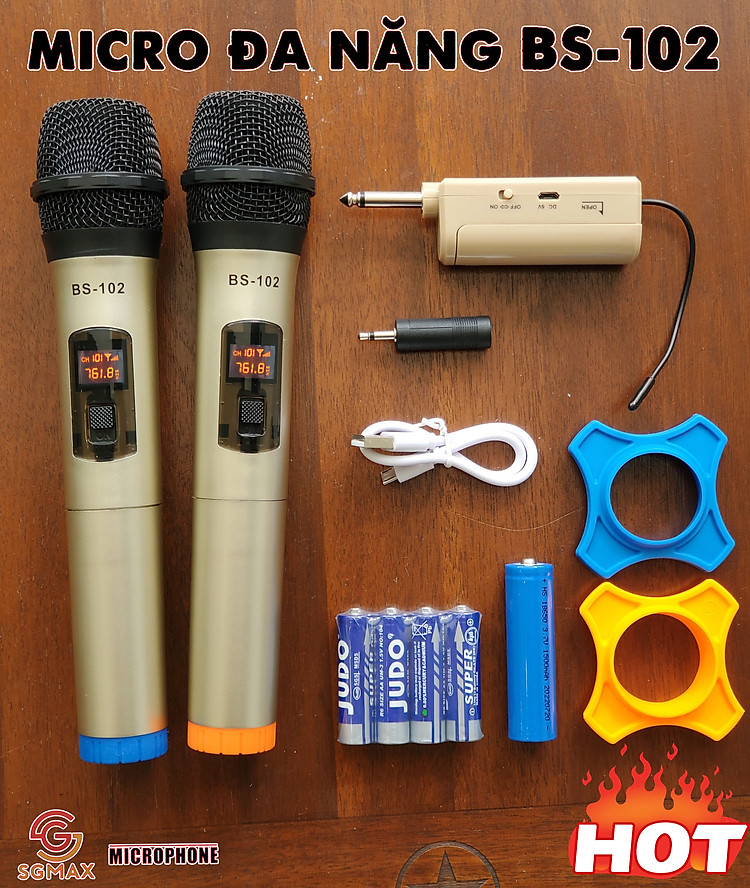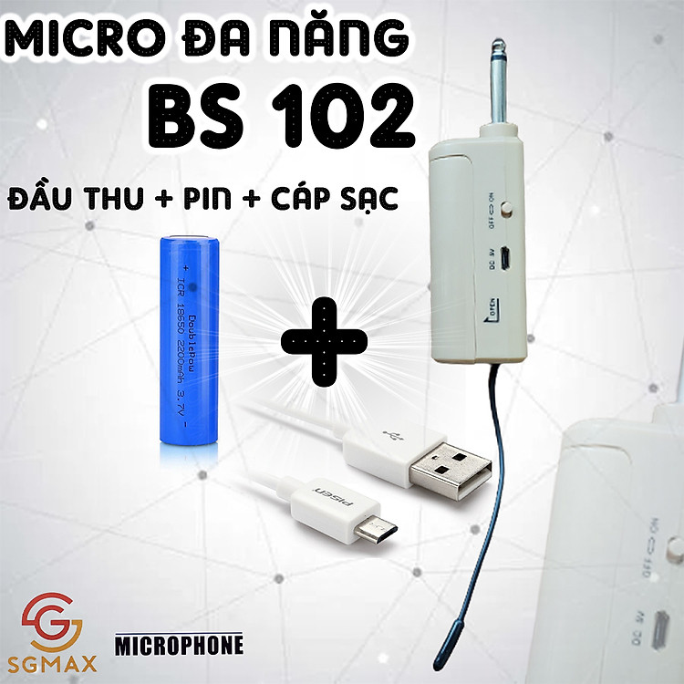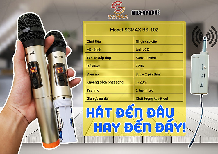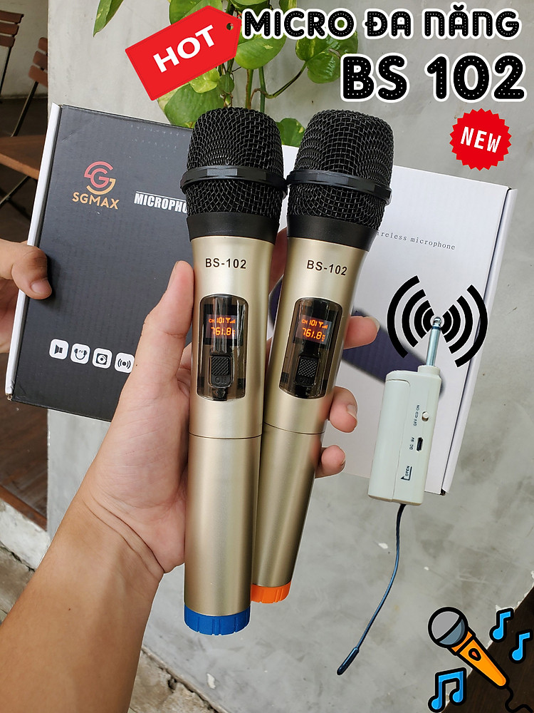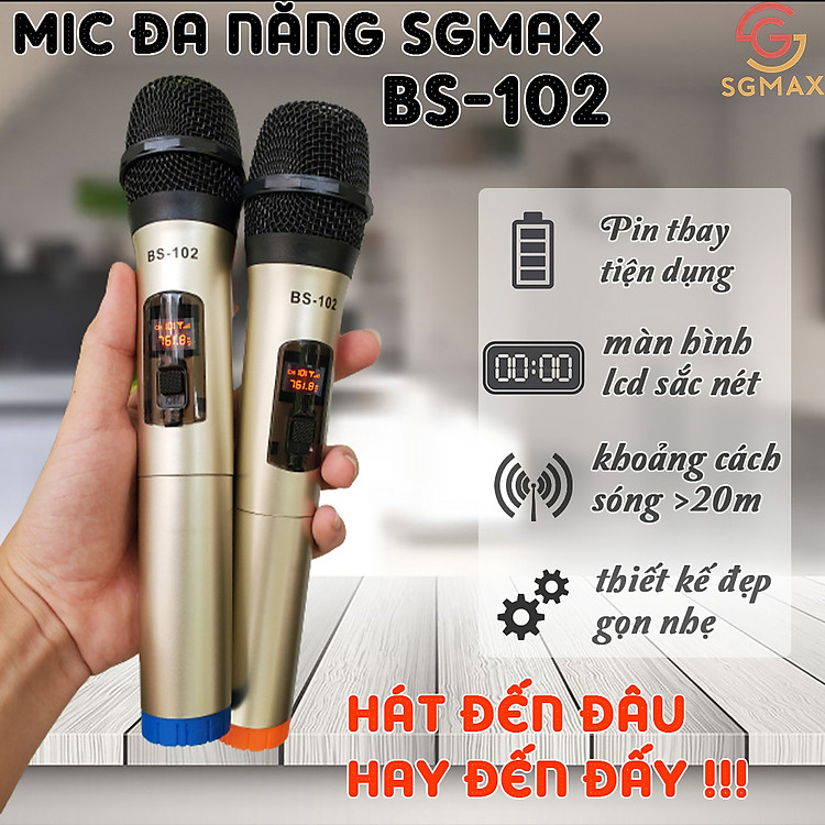 Micro không dây đa năng SGMAX 102 - Micro không dây giá tốt, sử dụng cho mọi loại thiết bị âm thanh - Micro dành cho loa kéo, loa bluetooth, amply - Màn hình Led hiển thị thông số - Âm thanh cực hay, giá cực rẻ