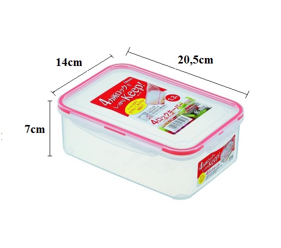 Hộp 1300ml : 20,5 x 14 x 7Hcm và 17,3 x 12,2 x 10,2Hcm.