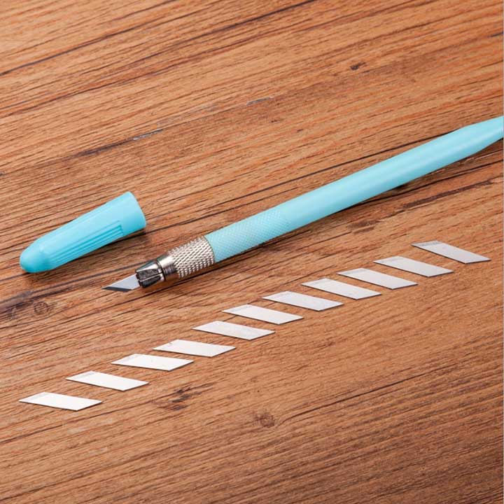 Bộ sản phẩm bao gồm: 1 cán dao và 12 lưỡi dao, lưỡi dao với kích thước nhỏ 4mm bạn sẽ thao tác dễ dàng với những tác phẩm của mình :)
