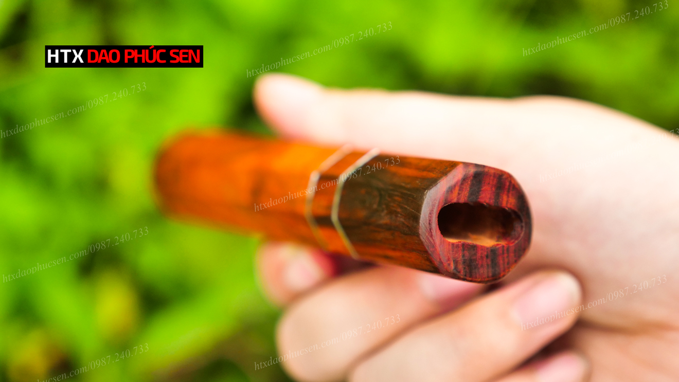 Cán dao Nhật bát giác gỗ trắc - CN06 được làm từ chất liệu gỗ TRẮC được làm từ gỗ mun là loại gỗ thường được sử dụng trong sản xuất đồ mỹ nghệ. Bên cạnh tính thẩm mỹ thì độ bền của gỗ TRẮC là yếu tố hàng đầu để HTX Dao Phúc Sen lựa chọn là nguyên liệu làm cán dao. Do đặc thù dao bếp khi sử dụng phải thường xuyên tiếp xúc nước nên với ưu điểm không mục, không mủn khi gặp nước như các loại gỗ thông thường, cộng với sự tỉ mỉ, cẩn thận của thợ trong công đoạn tra cán nên đảm bảo độ bền và an toàn tuyệt đối cho người sử dụng.