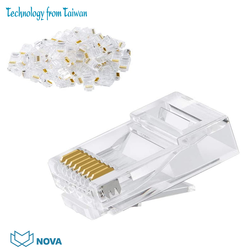 Đầu bấm mạng RJ45 Cat5 Nova là dòng sản phẩm cao cấp do công ty Ánh Hào nhập khẩu và phân phối trực tiếp. Hạt mạng RJ45 Cat5e Nova được sản xuất trên dây chuyền công nghệ hiện đại của Taiwan, chân tiếp xúc được làm từ 100% đồng mạ vàng 50U bằng máy X-ray đảm bảo độ chính xác tối đa nhất cho mỗi đầu bấm được xuất xưởng và đến tay người sử dụng.