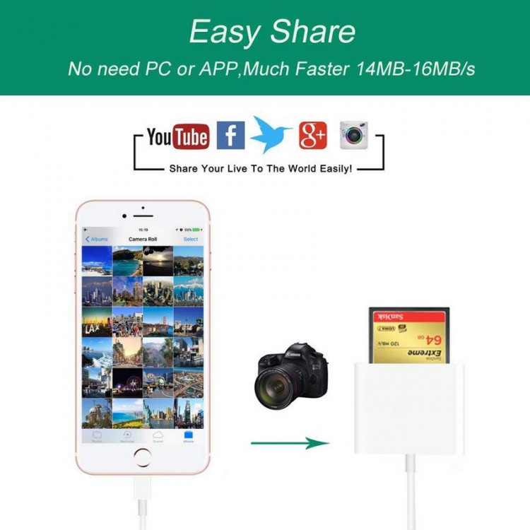 Tốc độ truyền nhanh: 14MB / S ~ 16MB / S Truyền dữ liệu tốc độ cao. Hỗ trợ các định dạng ảnh chuẩn: JPEG và RAW; Hỗ trợ các định dạng video SD và HD: H.264 và MPEG-4.