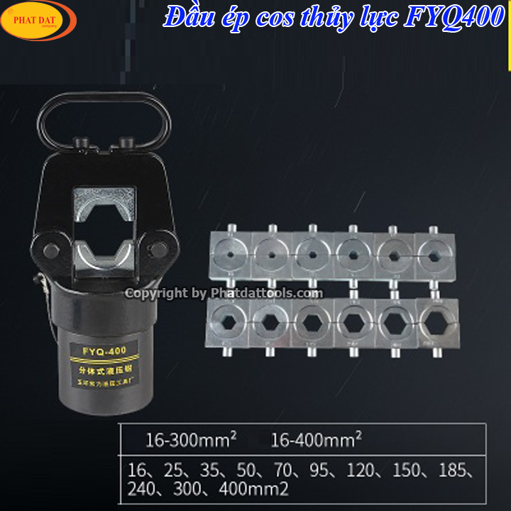 Đầu ép cốt thủy lực FYQ400 có thiết kế gọn nhẹ với đầu rời kết nối với bơm qua dây tuy-ô,phù hợp thi công ở những góc nhỏ hẹp...