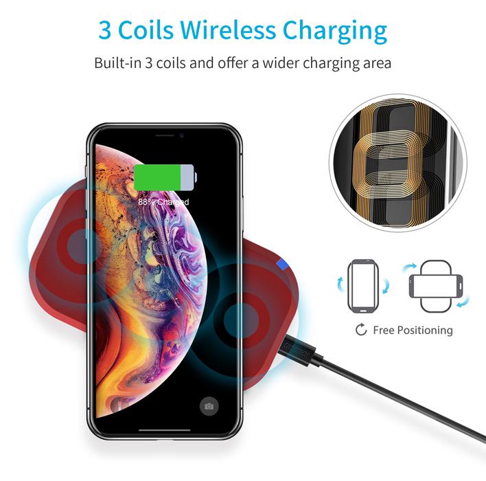 Sản phẩm đạt tốc độ sạc nhanh tối đa khi bạn dùng cốc sạc 5V-2A trở lên. Với thiết kế nâng cấp 3 cuộn cảm, dock sạc này hỗ trợ bạn sạc nhanh và có thể đặt lên bất kỳ đâu của dock.