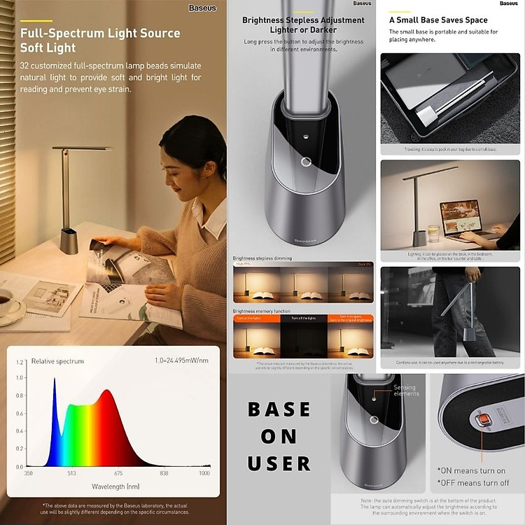 6 Lý Do cho Việc Lựa Chọn Đèn LED để bàn thông minh bảo vệ mắt DGZG-0G Baseus Smart Eye Series Rechargeable Folding Reading Desk Lamp (Smart Light ) Dark Gray (Cảm biến ánh sáng tự động, pin sạc, 3000k-6000k Full-Spectrum, Foldable and Rechargeable Reading Lamp)