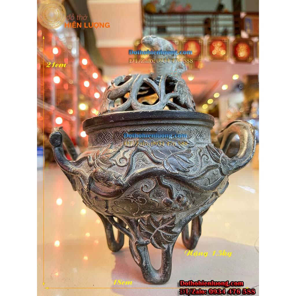 Đỉnh Xông Trầm Nho Sóc Bằng Đồng Màu Giả Cổ - ĐỒ THỜ HIÊN LƯỢNG- CỬA HÀNG ĐỒ THỜ BẰNG ĐỒNG UY TÍN TẠI VĨNH PHÚC VÀ HÀ NỘI