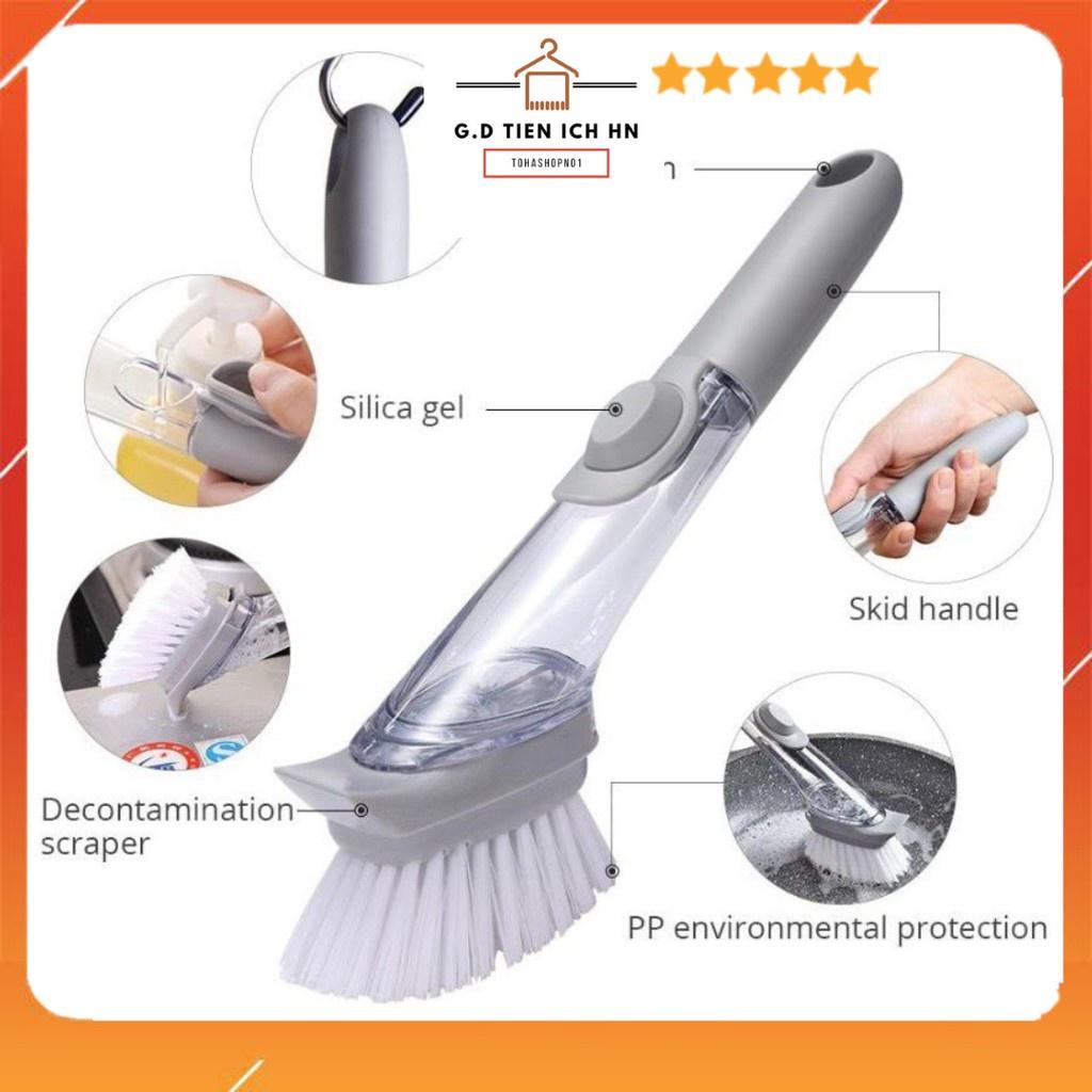 - Chức năng CHÙI, dụng cụ được thiết bị đầu chùi có các lông nhựa cứng giúp bạn chùi sạch các vết bẩn, vết cặn thức ăn bám trên thân nồi, chảo.