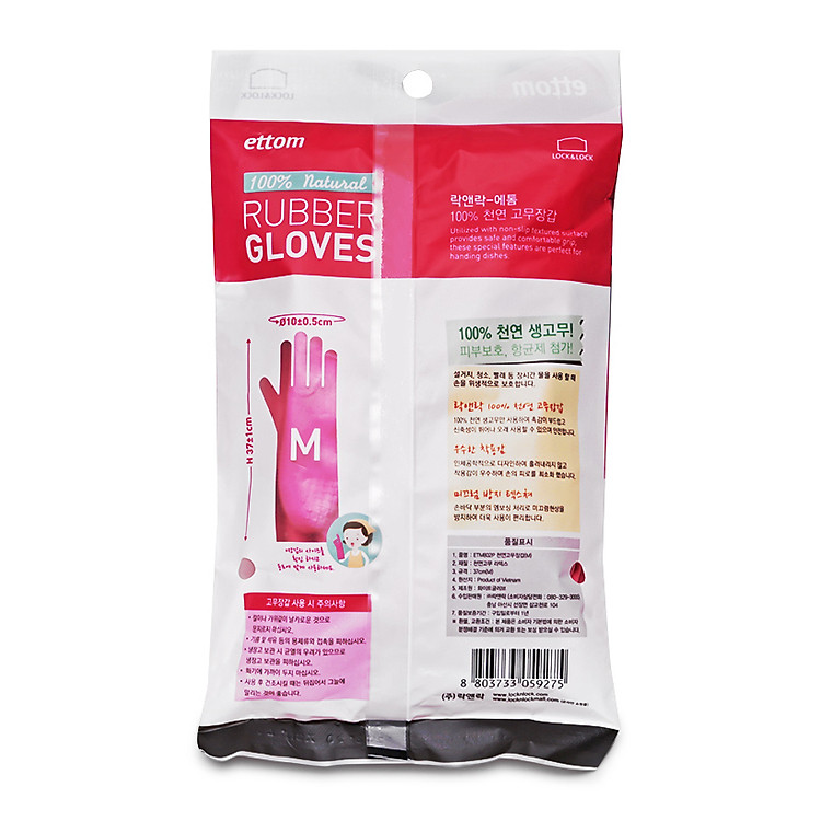 - Giúp tránh các loại nước hóa chất khi rửa bát, giặt quần áo, bảo vệ da tay: Găng tay cao su tự nhiên Lock&Lock ETM801P cỡ M37cm (Hồng) sở hữu độ dài vừa đủ, bám vào cánh tay giúp bạn tránh được các loại nước hóa chất khi rửa bát, giặt quần á bảo vệ da tay một cách toàn diện nhất.