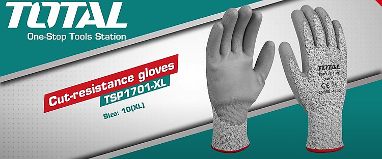Găng tay chống cắt, cách điện TOTAL TSP1701 là găng tay chống cắt phổ biến được nhiều người tiêu dùng ưa chuộng và sử dụng rộng rãi trong các ngành chế tạo máy móc, thiết bị, chế tạo kim loại, sửa chữa ô tô Đây là lựa chọn tối ưu để bảo vệ bàn tay khỏi các rủi ro trong quá trình làm việc có nhiều loại găng tay chống cắt khác nhau nhưng loại găng tay này hay được sử dụng.