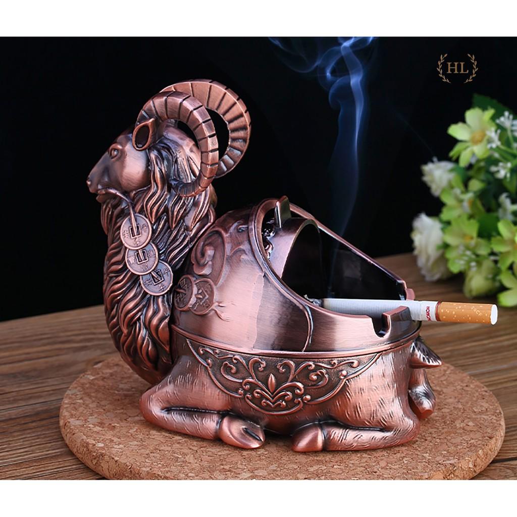 GẠT TÀN HÌNH DÊ | GẠT TÀN HỢP KIM HÌNH CON DÊ HOA VĂN HỌA TIẾT CỔ