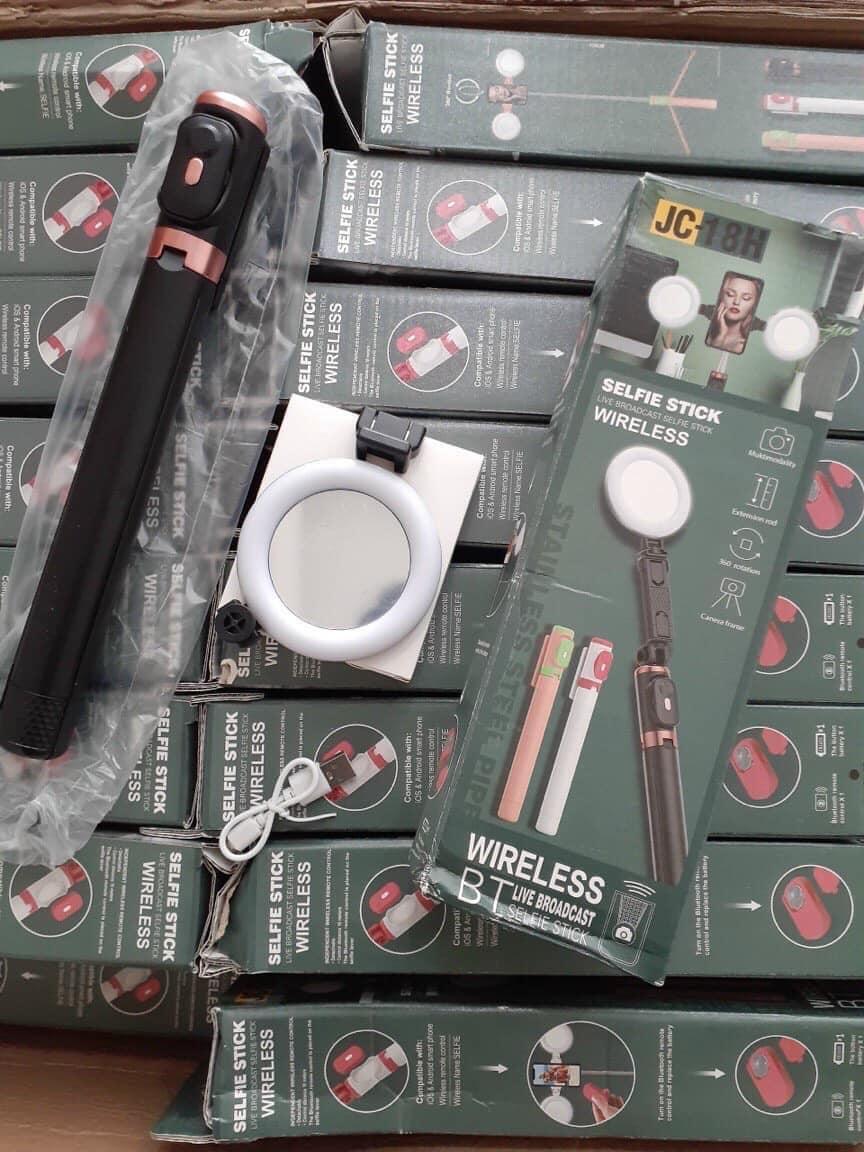 THÔNG SỐ KỸ THUẬT Gậy chụp ảnh selfie 3 chân kéo dài 170cm, có 2 bóng đèn LED trợ sáng và Bluetooth điều khiển từ xa lên đến 10 mét