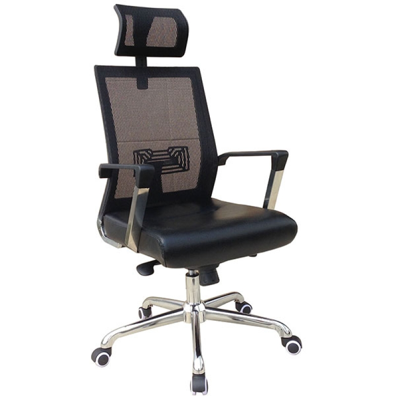 Ghế lưới cao cấp khung tựa nhựa bọc vải lưới, đệm mút bọc da công nghiệp. Chân thép mạ.