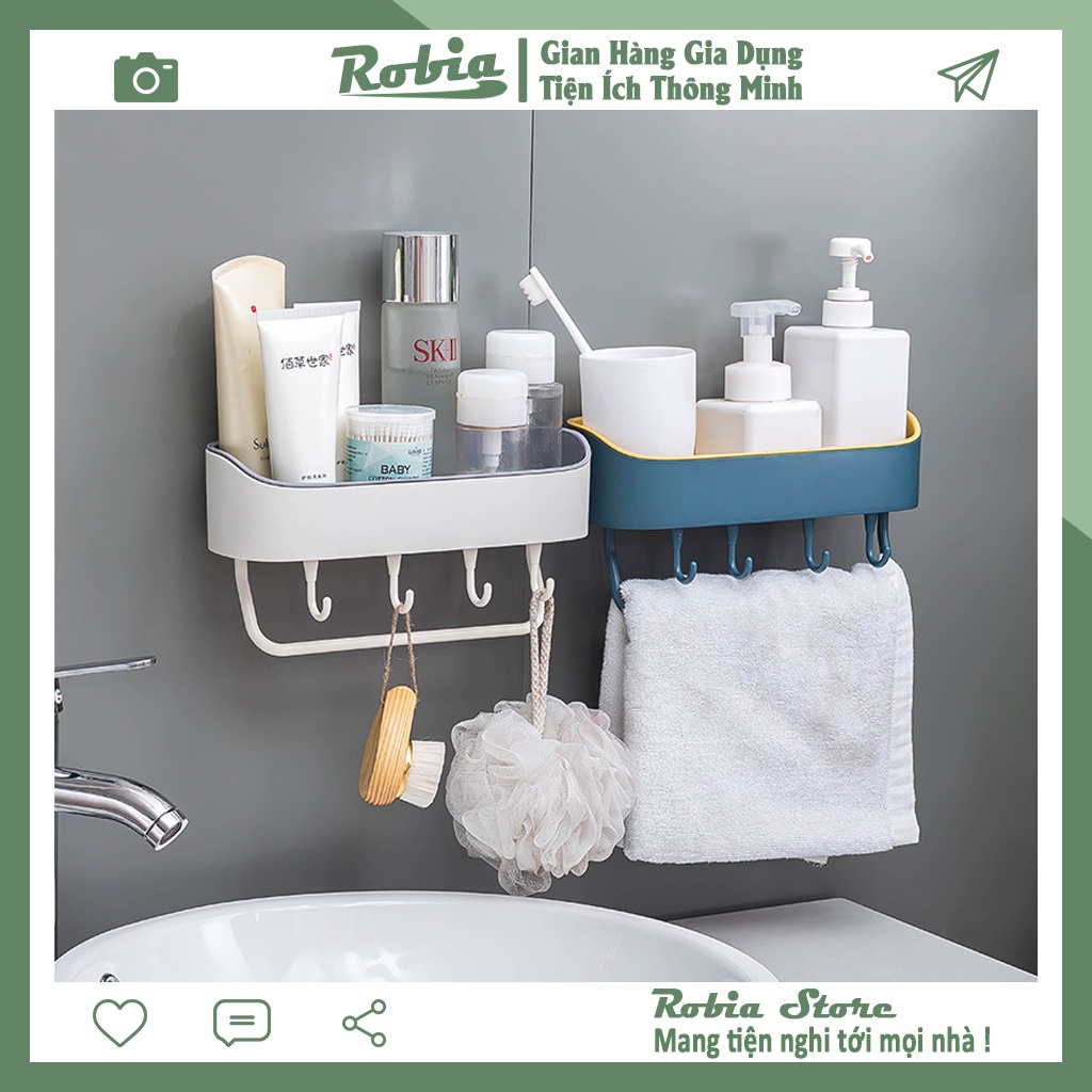 Giá Để Đồ Nhà Tắm Kệ Để Đồ Có Móc Treo Kèm Thanh Ngang Phơi Khăn Dán Tường Chắc Chắn