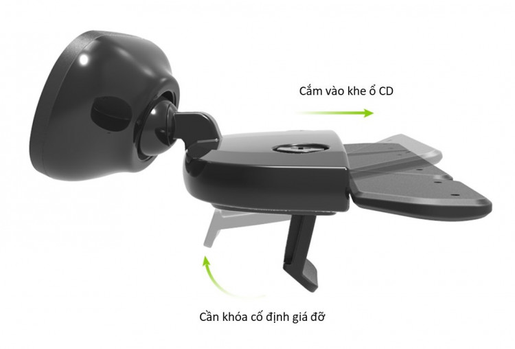 Giá đỡ được lắp trực tiếp vào khe ổ CD của xe bằng đầu nối bọc cao su mềm và cần khóa cố định vị trí. Khi đã lắp đặt xong giá đỡ đơn giản chỉ cần gắn điện thoại lên đầu giá đỡ để giữ chặt thiết bị trong suốt cuộc hành trình.