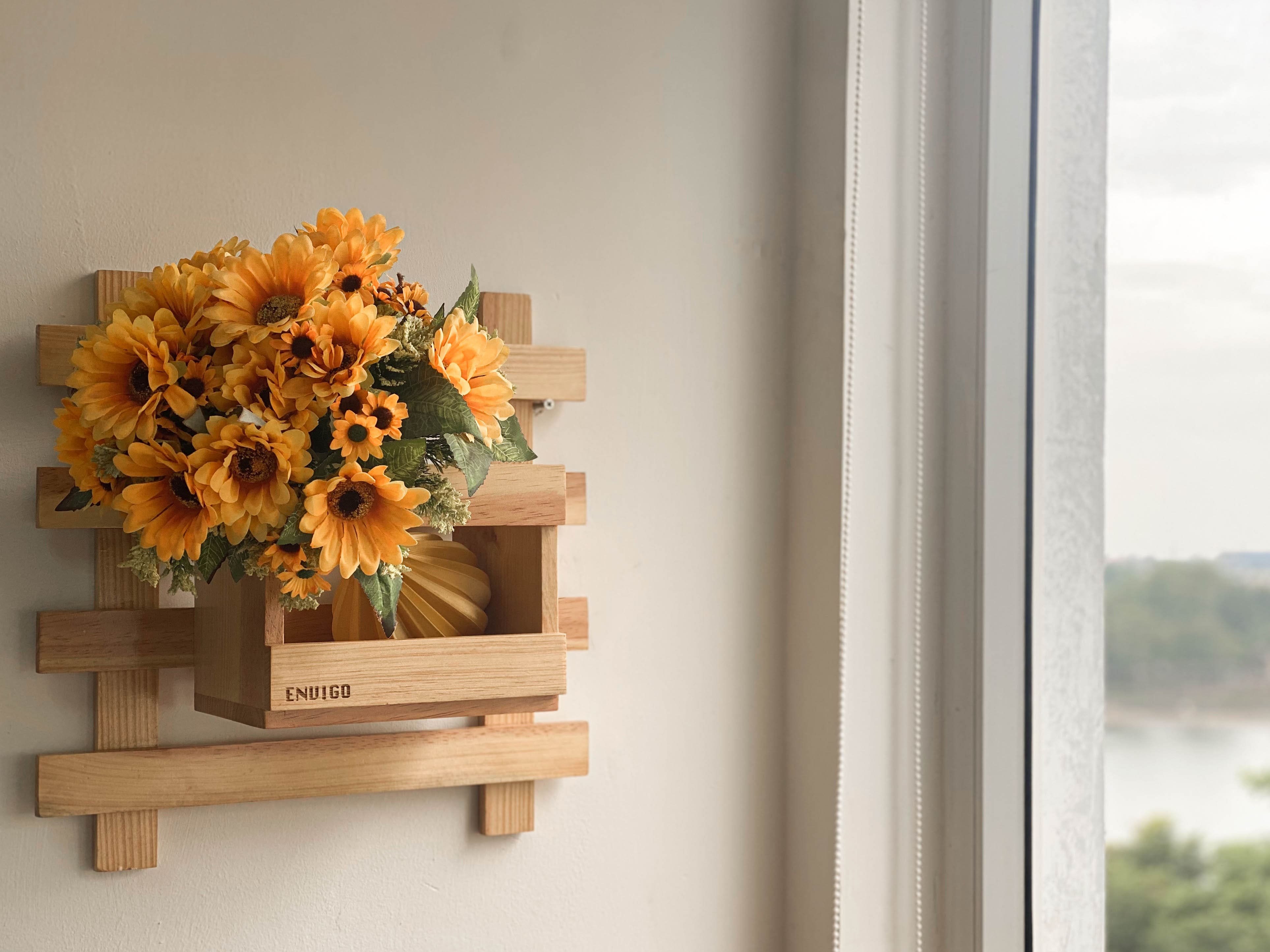 Giá gỗ pallet đơn gắn tường treo cây trang trí ban công, nhà cửa