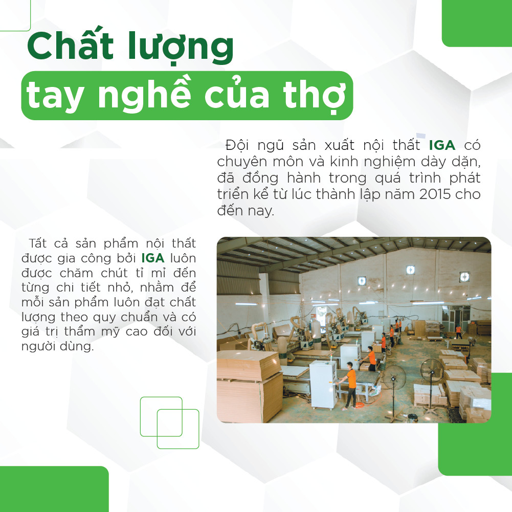- Chất liệu: Gỗ Công nghiệp MDF, phủ melamin bề mặt, dán chỉ cạnh