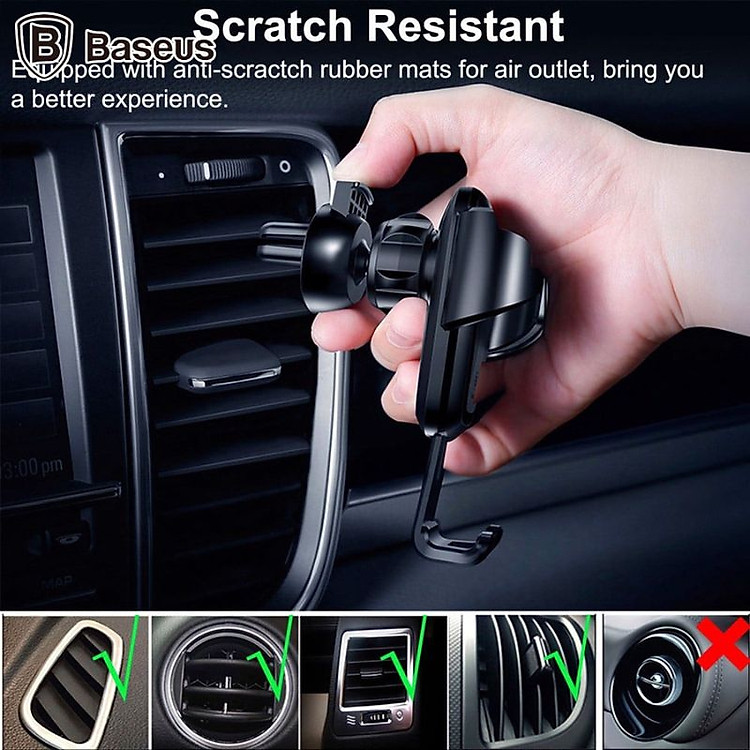 - Phần đế được thiết kế chắc chắn, dễ dàng treo vào khe thông gió. Tương thích với mọi loại xe.
