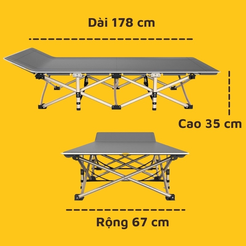 - Giường xếp gấp văn phòng được làm bằng chất liệu thép không gỉ, hợp kim nhôm cao cấp, vải thấm hút siêu bền, tạo cảm giác êm ái.