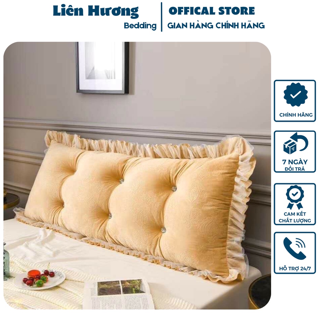Nhà cửa & Đời sống > Nội thất > Đệm ngồi || Gối tựa đầu giường, đệm đầu giường, mẫu chữ nhật dập vân hoa viền bèo công chúa kích thước 1.8m
