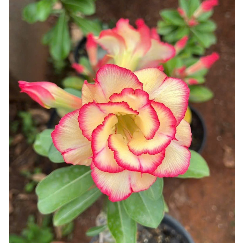Giới thiệu Hạt giống hoa sứ Thái Lan màu vàng nhạt viền hồng cánh sen - Bịch 10 hạt - Mã số 1556