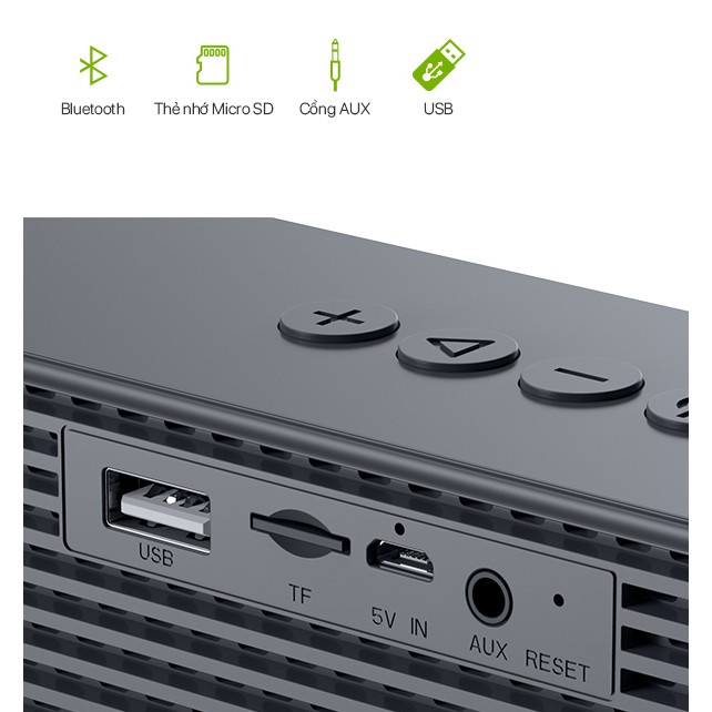 - Kết nối: bluetooth, thẻ nhớ TF, USB, AUX