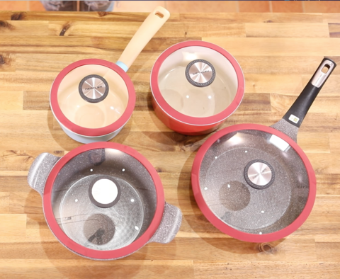 Có các cỡ khác nhau từ 18cm, 24cm và 26cm dùng được cho nhiều nồi chảo.