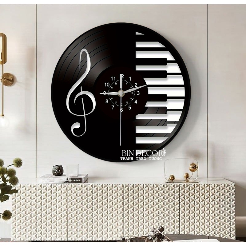 Giới thiệu (HCM) Tranh đồng hồ tròn hoạ tiết âm nhạc tarng trí lớp học nhạc, phòng thu âm Binbin 1 kèm đinh treo