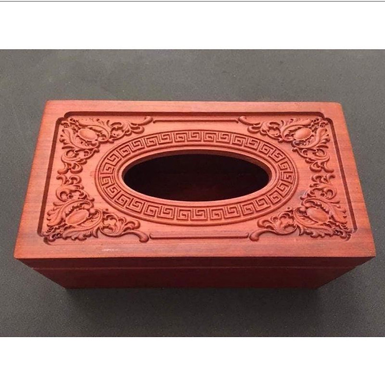 Hộp Đựng Giấy Ăn Gỗ Hương Cao Cấp Hình Chữ Nhật Trạm Khắc Tinh Sảo ( hình thật )