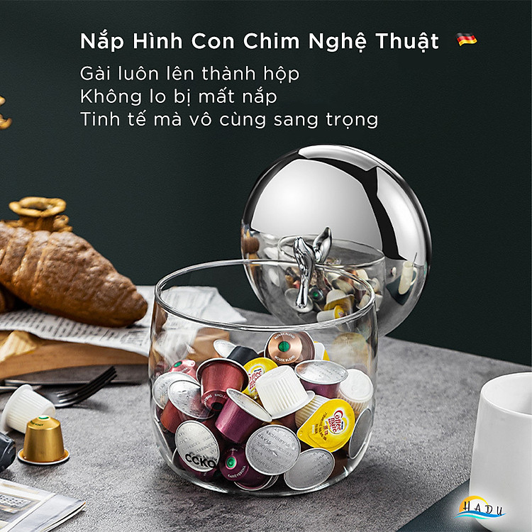 Hộp Đựng Bánh Kẹo Thủy Tinh Nắp Inox 304 Cao Cấp Để Bàn Đạt Chất Lượng Đức CCKO