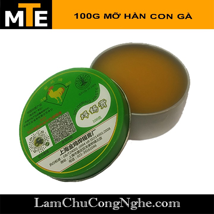 – Mỡ hàn con gà 100g là sản phẩm không thể thiếu trong quá trình hàn mạch điện tử, đặc biệt là hàn linh kiện SMD. Mỡ hàn con gà 100g đóng vai trò là dung môi gần giống nhựa thông được sử dụng khi hàn thiếc.