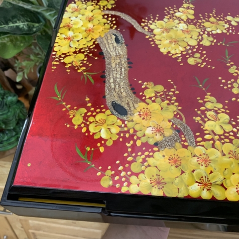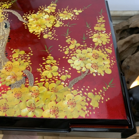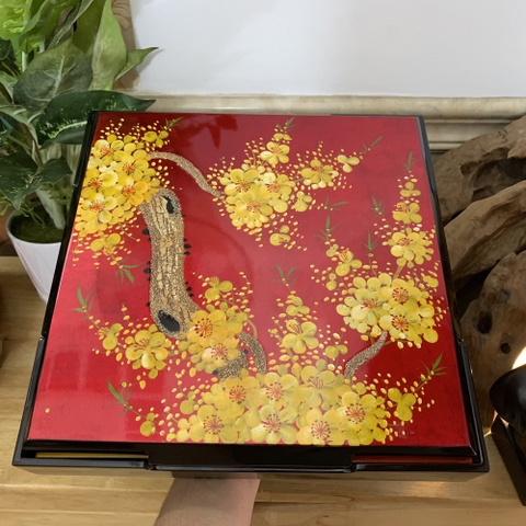 | Model | Hộp Mứt Sơn Mài Vuông 30cm - Vẽ hoa mai vàng & nền đỏ |