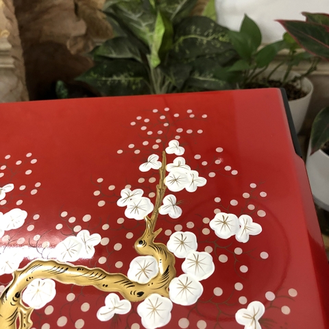 | Model | Hộp Mứt Sơn Mài Vuông 30cm - Vẽ hoa mai trắng nổi & nền đỏ |